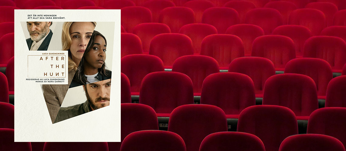 Tisdagen den 21 oktober kl 18 visas ”After the Hunt” på Sagabiografen och vi har 50 platser till den föreställningen för endast 65 kr/st. Dessutom får du köpa popcorn och läsk för 70 kr mot uppvisande av din biljett.